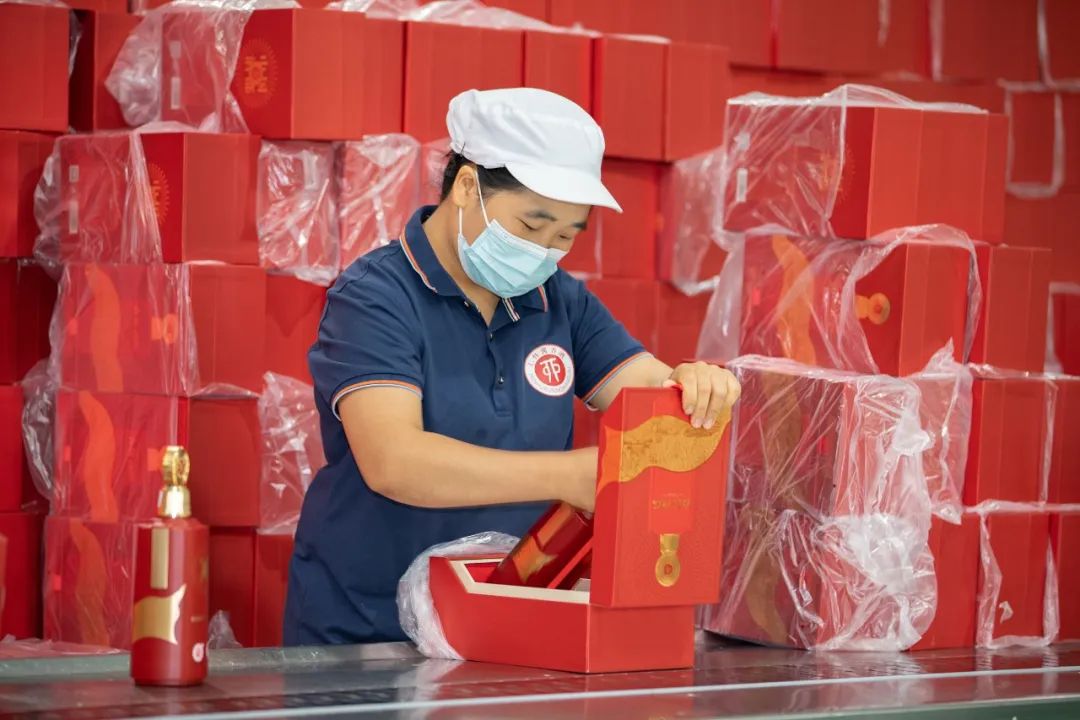 贴标、喷码后的产品,被小心装入包装盒内后,来到最后一道工序——装箱贴物流码。只见选手将酒盒拿起,快速装箱后,贴上物流码。这张小小的物流码,恰似一件产品的“身份证”。消费者通过扫码,能清晰地读取产品信息,实现明白消费。