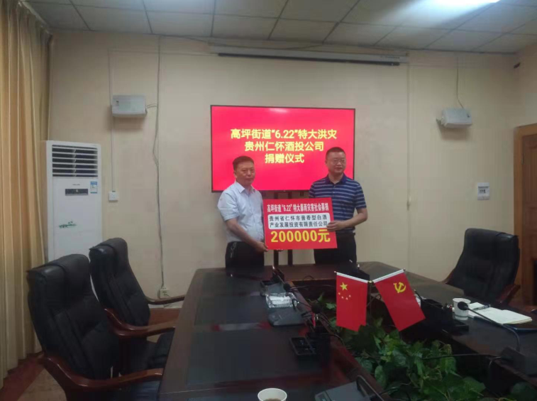 今年6月21、22日,全省遭受了特大暴雨天气,遵义市汇川区高坪街道办事处受灾严重,洪水入侵导致山体滑坡、民房倒塌和大面积农作物被淹被毁,给广大群众生产生活造成了巨大损失。为充分体现国有企业社会责任,发扬一方有难、八方支援的传统美德,经公司经营班子会、党总支、董事会研究,并报仁怀市国有资产监督管理委员会及仁怀市人民政府审批,决定向遵义市汇川区高坪街道办事处捐赠救灾款20万元(人民币大写:贰拾万元整),帮助受灾群众尽早渡过难关,增强恢复重建家园的信心和决心。