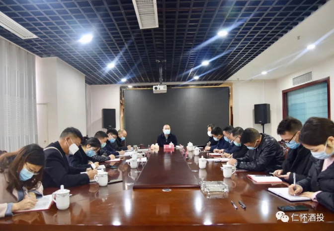 2月24日,仁怀市委常委、常务副市长冉拥军前往仁怀市酒投公司,调研指导华夏民族酒文化博览园仓储中心项目复工复产工作。仁怀市委党校常务副校长梁剑云,市政府办、市发改局、市人民法院等部门负责人,仁怀市酒投公司董事长李武、总经理周祈飞及公司相关班子成员参加调研座谈会。