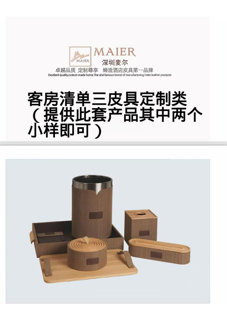 客房物资类:客房小电器、客房用品杂件、客房定制皮具、清洁用具、工作车类、一次性耗品、前厅物资、清洁设备、客房部清洁剂、酒店货架、管事部用具、餐饮布草等,采购数量、参数等相关要求详见《附件1:客房物资采购清单》。