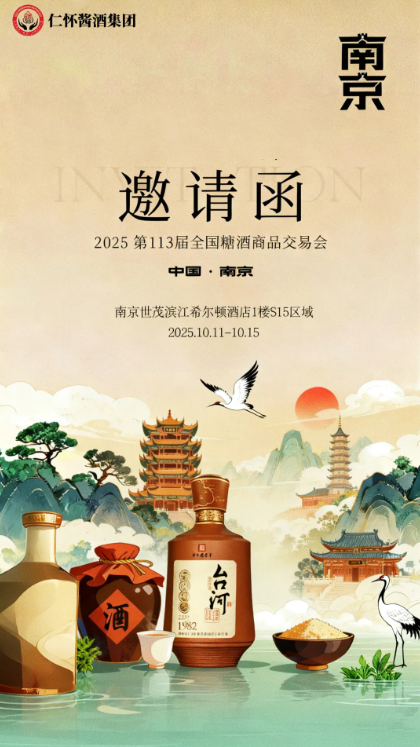 10月11日-15日,欢迎大家莅临南京世茂滨江希尔顿酒店1楼S15仁怀酱香酒展位,近距离感受仁怀酱香酒的品质与魅力,共同开启这场酱香与金陵文化的交融之约。