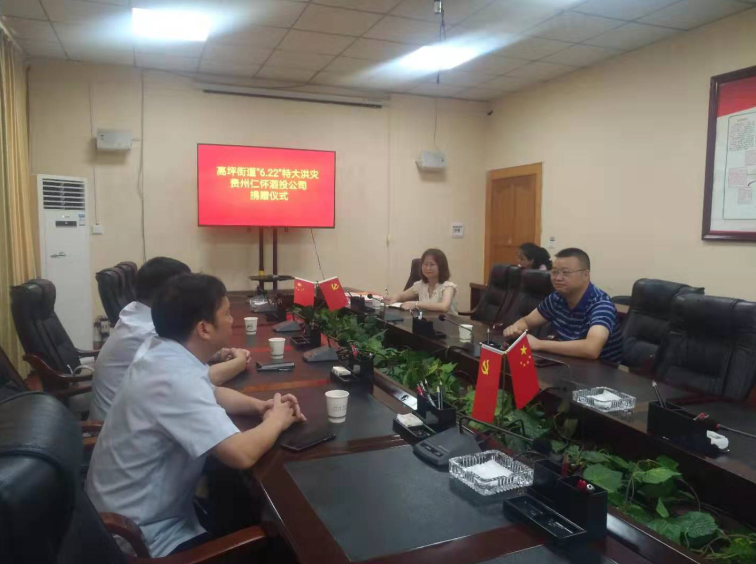 2019年7月31日上午,公司党总支副书记胡安虎一行代表公司董事会及经营班子前往“6•22”特大暴雨受灾区遵义市汇川区高坪街道办事处举行捐赠仪式,为高坪街道办事处捐赠救灾款20万元,助力灾区恢复重建工作尽一份绵薄之力,中共汇川区高坪街道党工委书记王胜、党工委委员伍光池出席捐赠仪式。